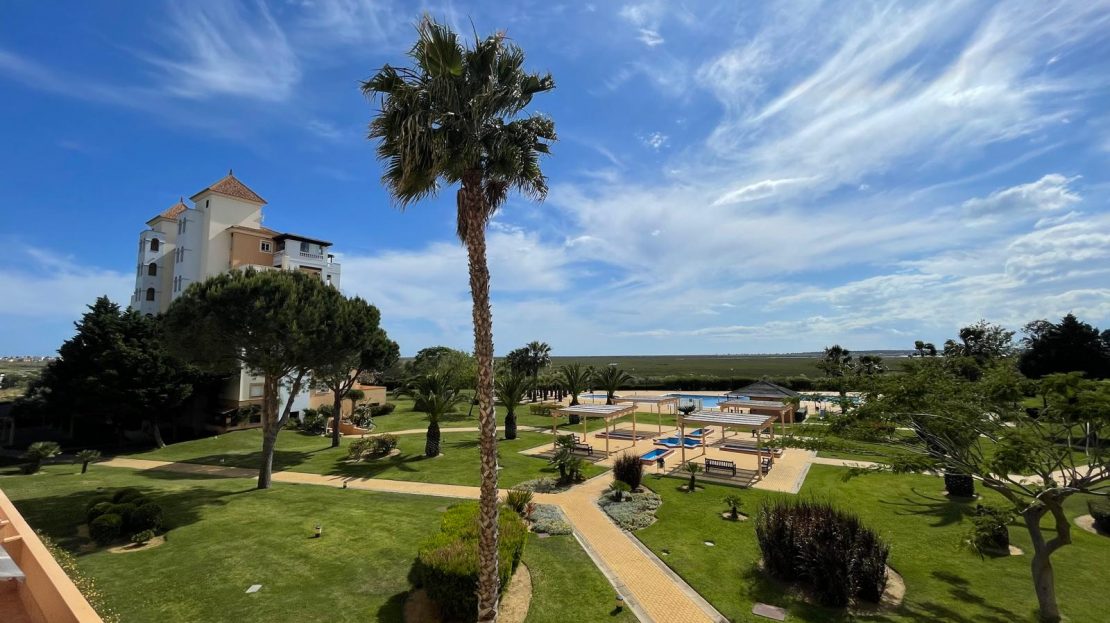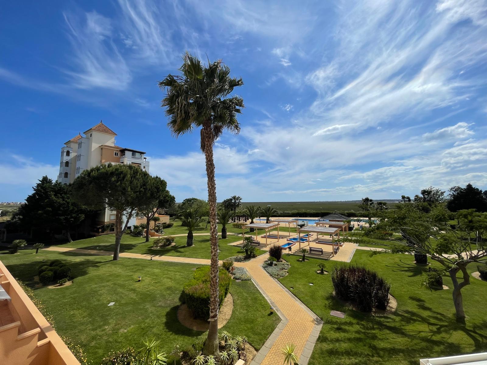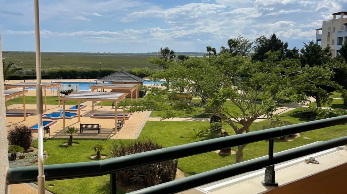 Apartamento ideal para una o dos personas , ubicado en un magnifico entorno a escasos minutos de la playa y del pueblo de Ayamonte. Tiene a un minuto un supermercado el Jamón para hacer la compra del día a día. También un campo de Golf .
