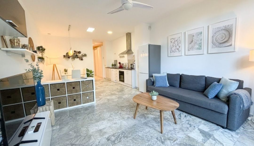 Apartamento de dos habitaciones, un baño, amplia terraza y piscina.