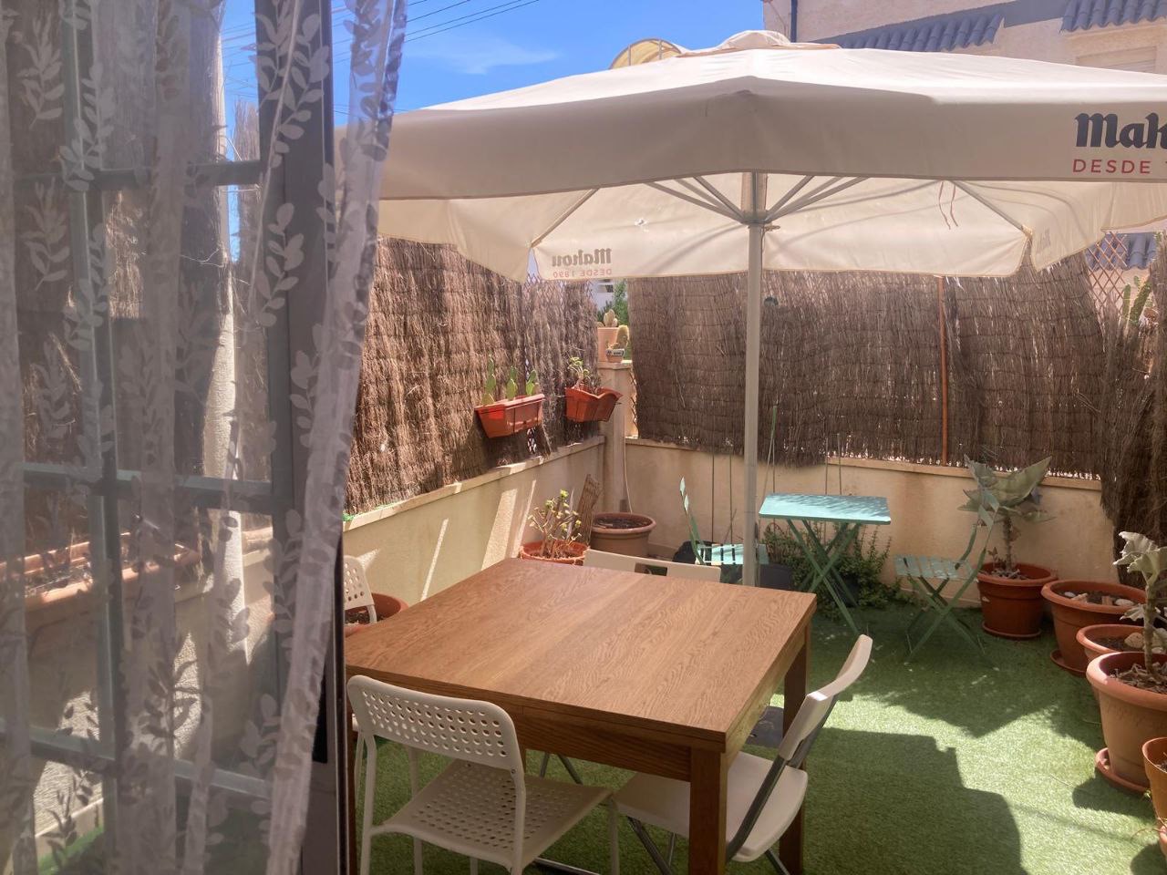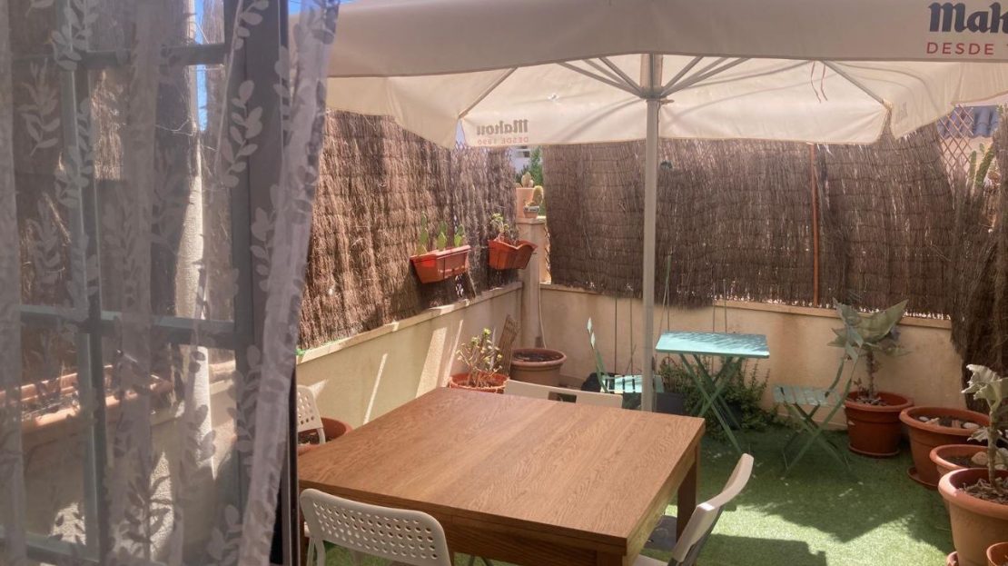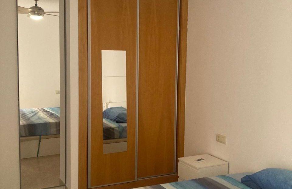 Coqueto apartamento en planta baja, barrio tranquilo, a 100 m de la playa. Consta de dos habitaciones con armarios empotrados, un baño, cocina, salón, patio interior, terraza y garaje.