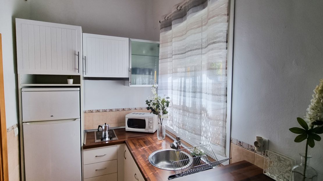 – Cocina completa con lavadora, frigorífico y microondas