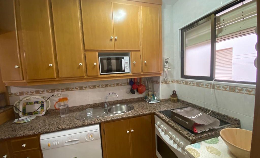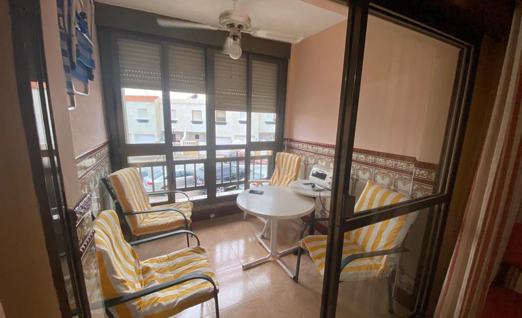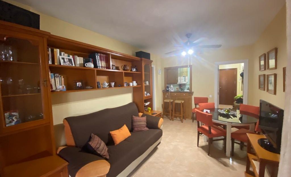 Apartamento de 2 dormitorios, salón, cocina, 1 Baño y terraza acristalada, ubicada en la planta primera con ascensor de un residencial, con pistas y piscina ubicado en primera de línea de playa.