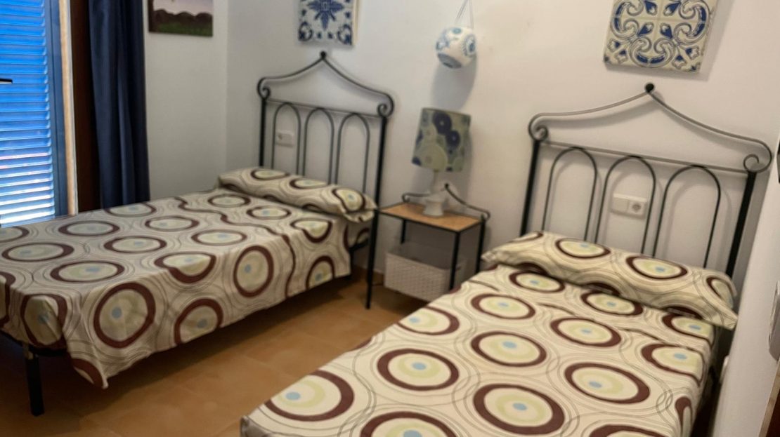 Consta de 2 habitaciones, una de matrimonio y otra doble con armarios empotrados, 2 baños, cocina, lavadero, salón-comedor, 2 terrazas y jardín.