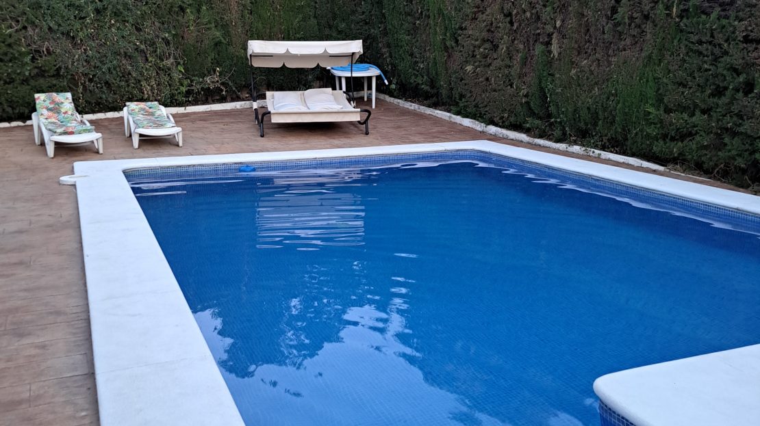Se Alquila bonito chalet en Castilblanco de los Arroyos, Sevilla. Cuenta con 3 dormitorios, salón con chimenea, cocina, 2 baños, 2 porches, piscina privada y garaje privado.
