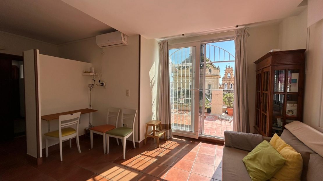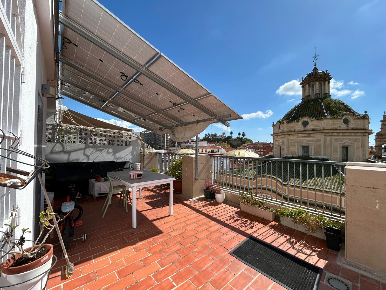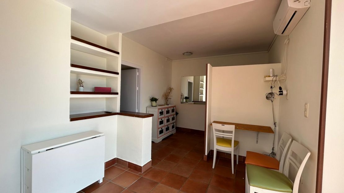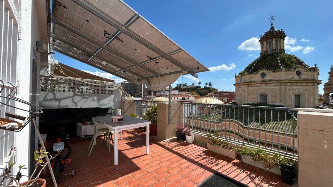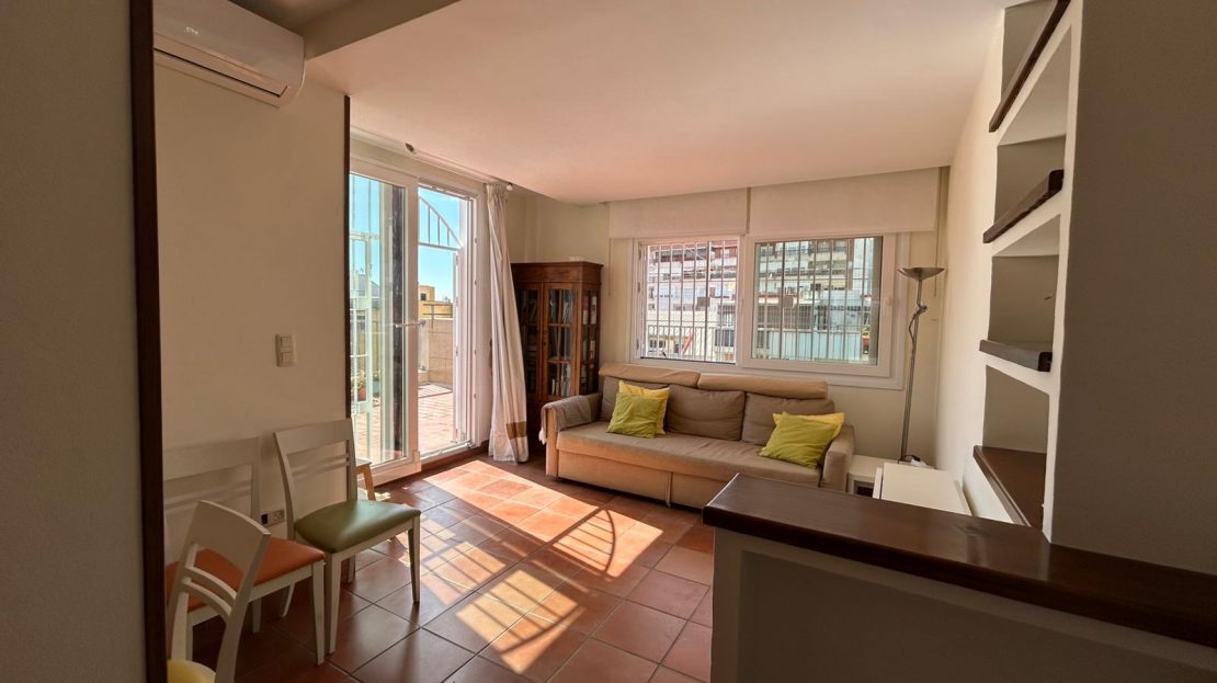 La vivienda es muy luminosa y consta de 2 dormitorios (ambos con orientación oeste), cocina totalmente equipada (orientación este), un baño y un amplio salón con aire acondicionado frío/calor (orientación sur). El punto fuerte es su espectacular terraza de 100 m² con orientación suroeste.