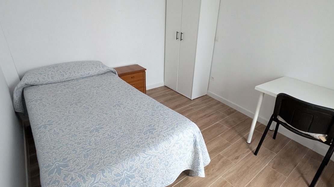 Se alquila habitación individual en piso céntrico y luminoso con cama individual y baño a compartir con otra persona (350€ al mes). La habitación cuenta con cerradura propia y llaves.