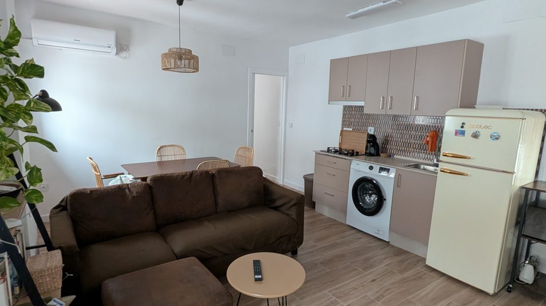 🍳 Cocina equipada con frigorífico, lavadora, cafetera, microondas y menaje básico.