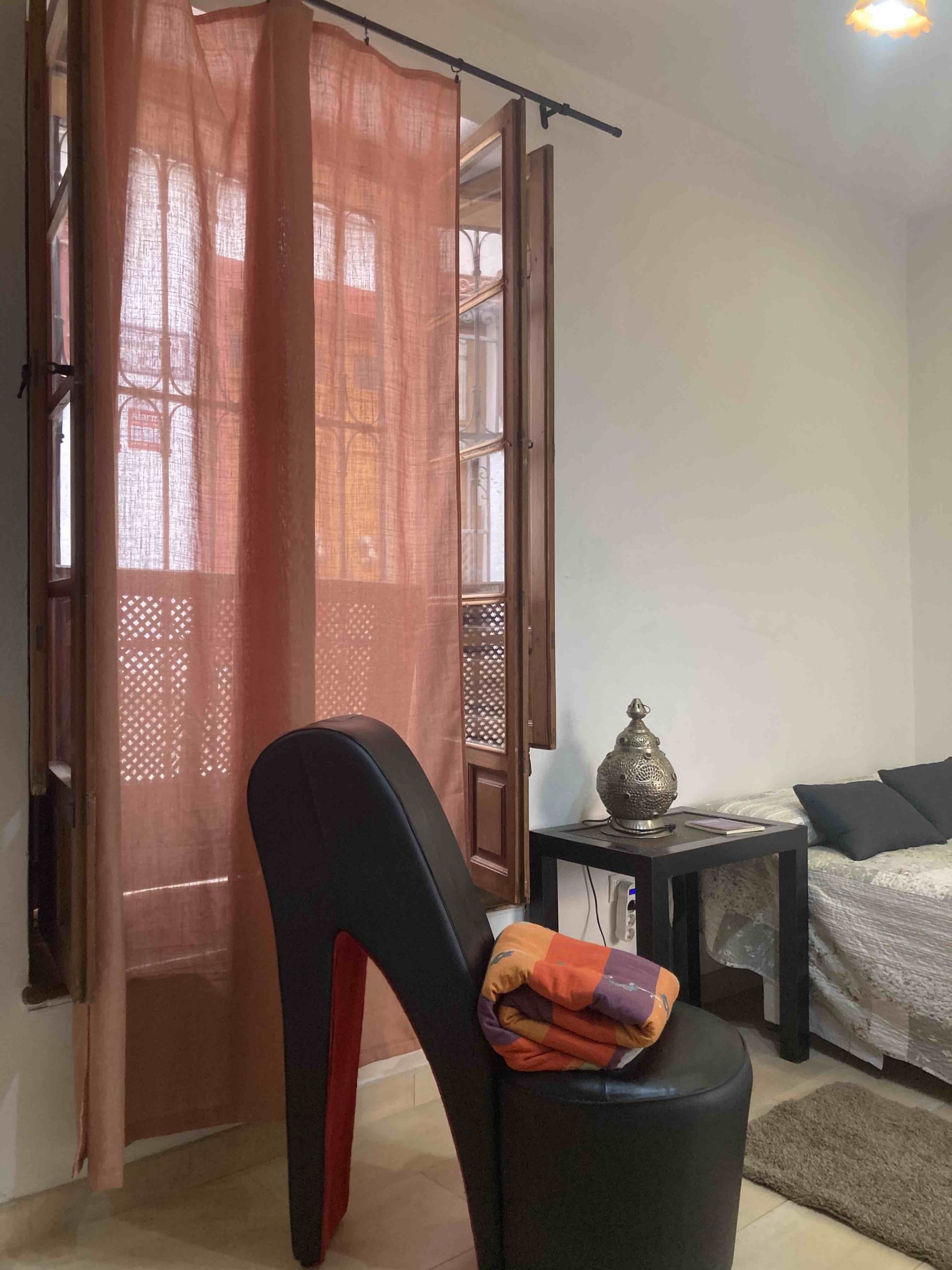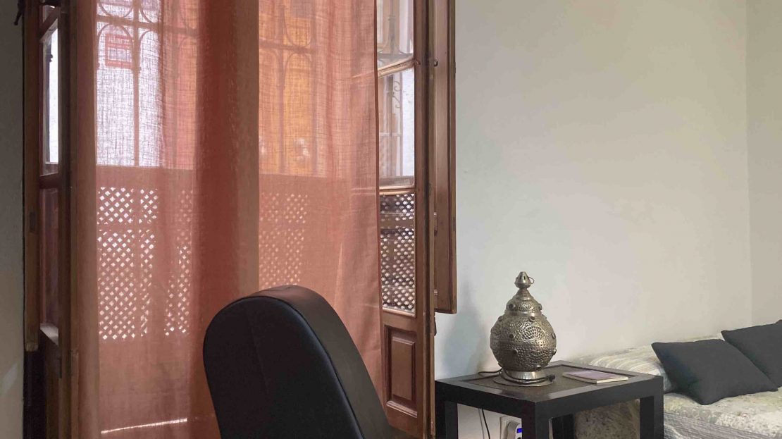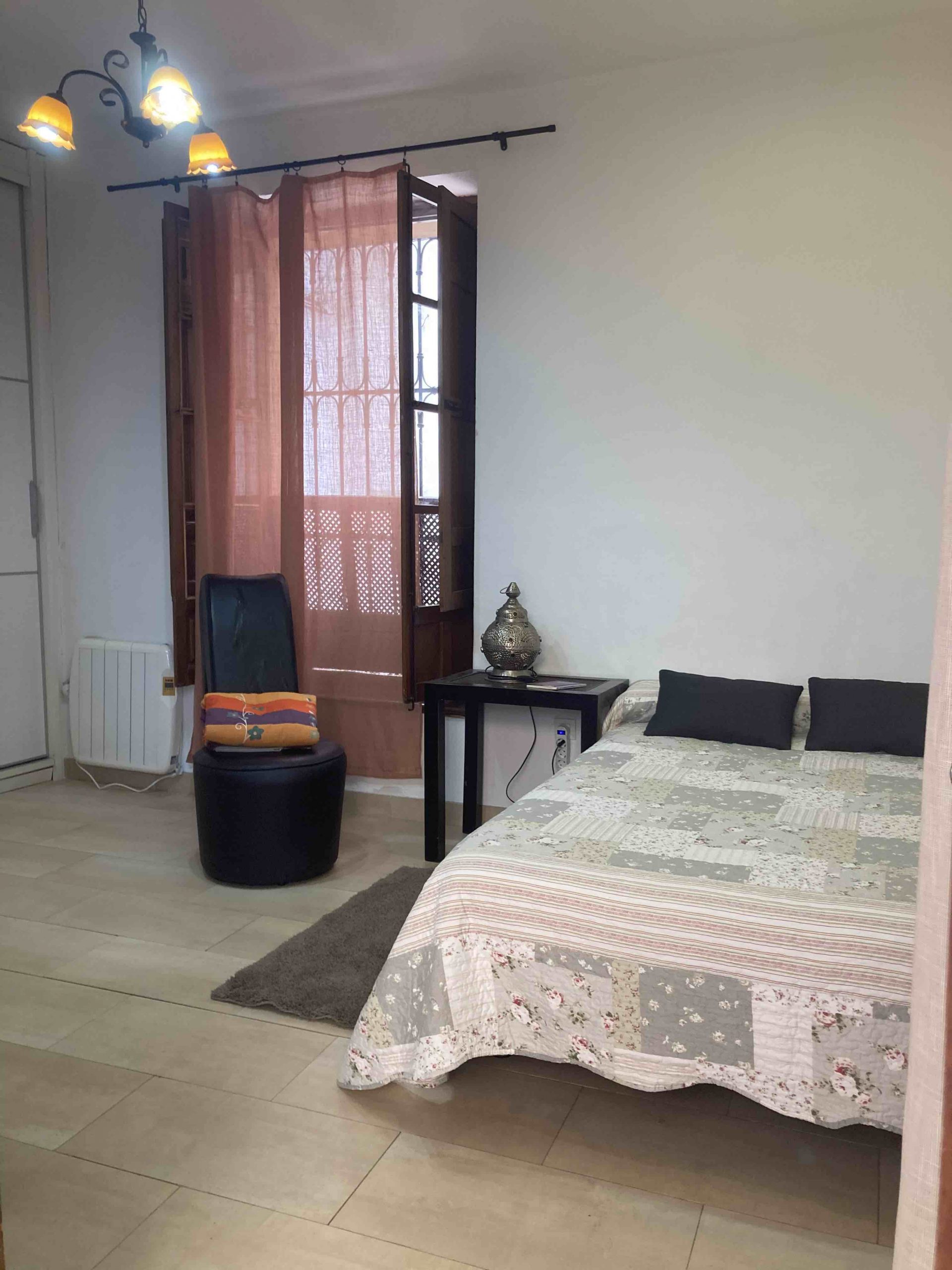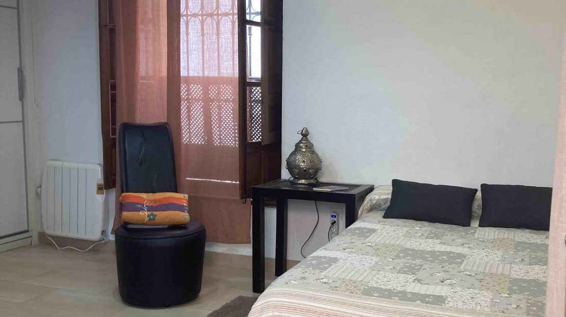 Habitación en alquiler de temporada, en piso bajo con patio interior y terraza, baño, cocina y salón compartidos. Amueblado