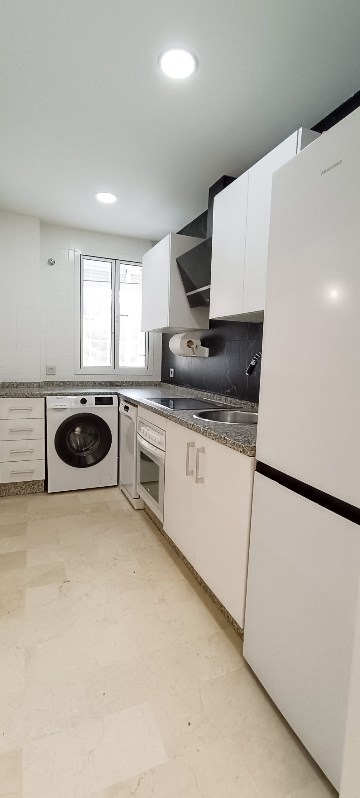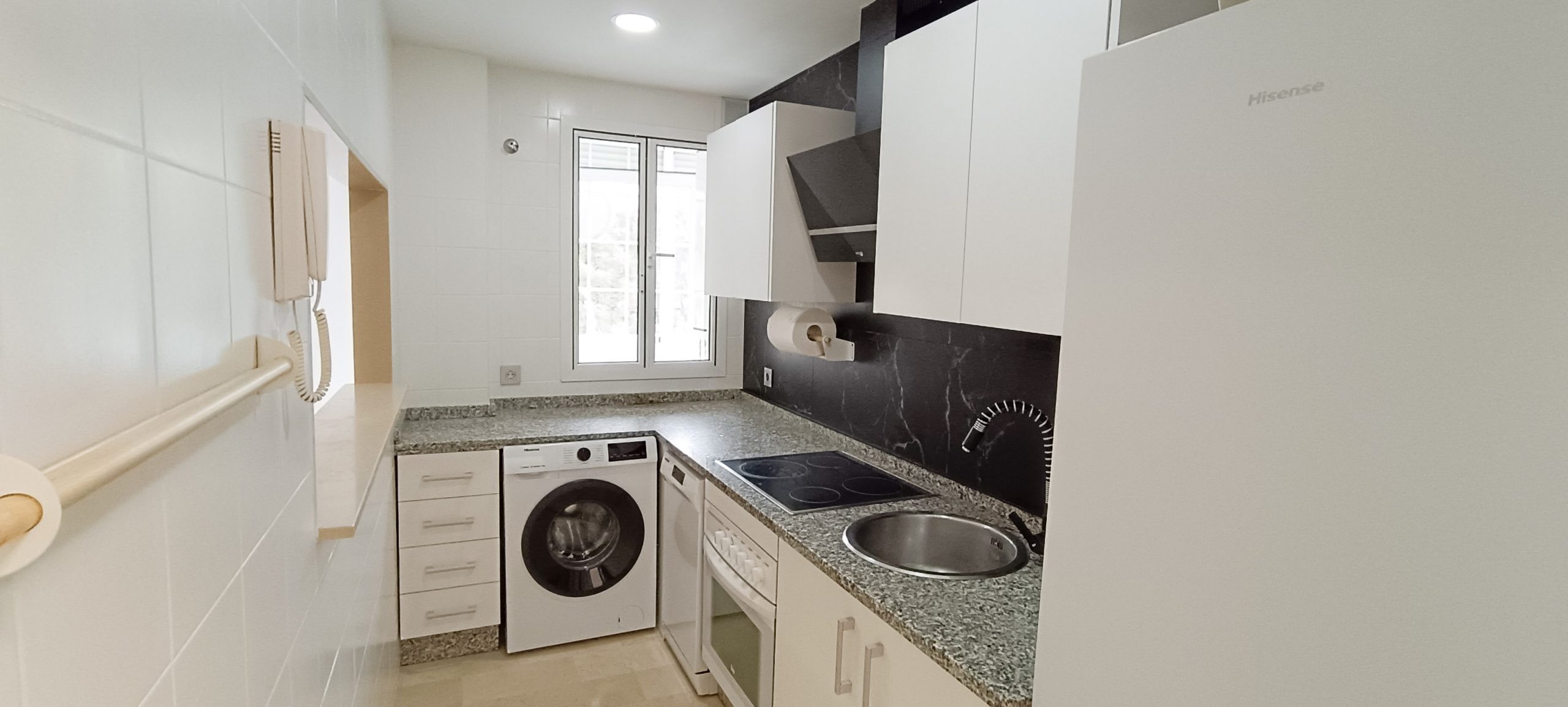 Cocina independiente equipada con electrodomésticos nuevos a estrenar