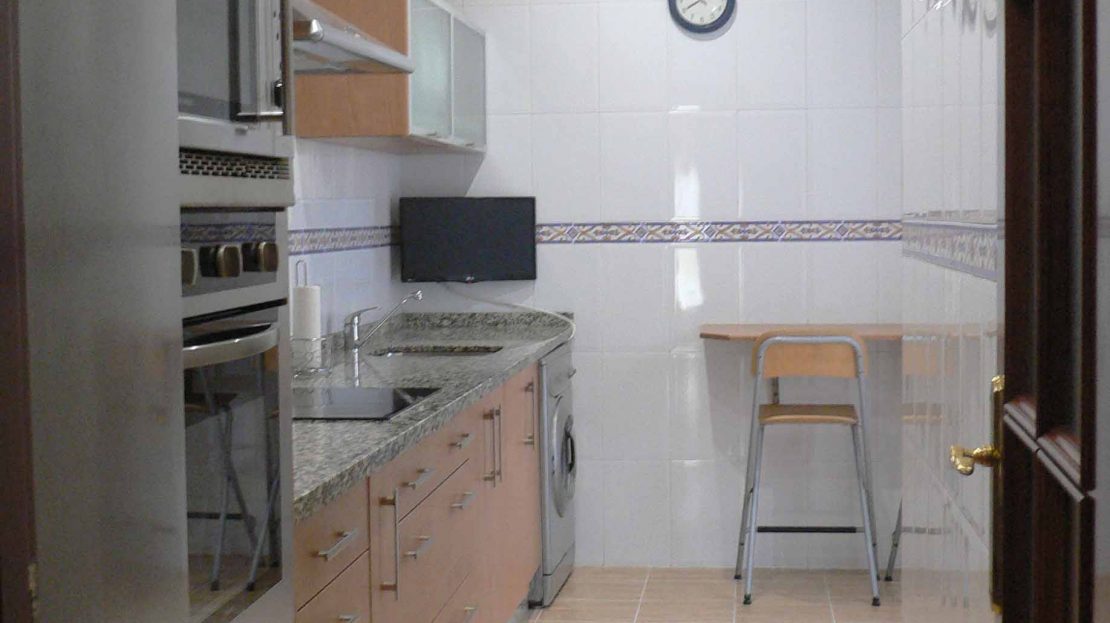 Incluye todo el menaje necesario, más: tostador, cafetera de goteo y de cápsulas Nespresso, exprimidor, sandwichera, batidora, barbacoa y resto de enseres necesarios, como tabla de planchar, plancha… no se echa absolutamente nada en falta.