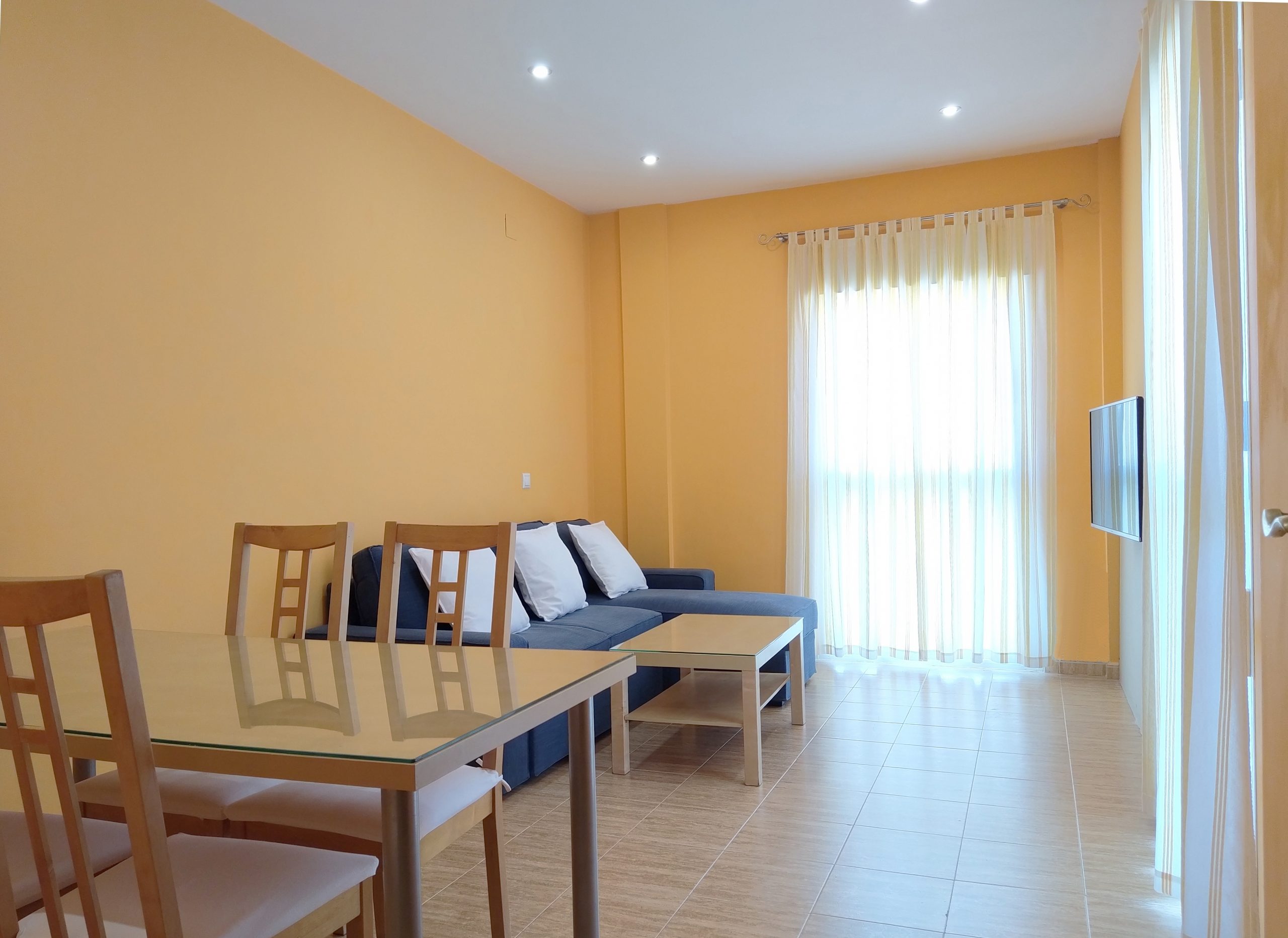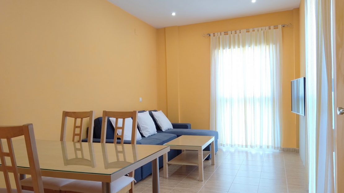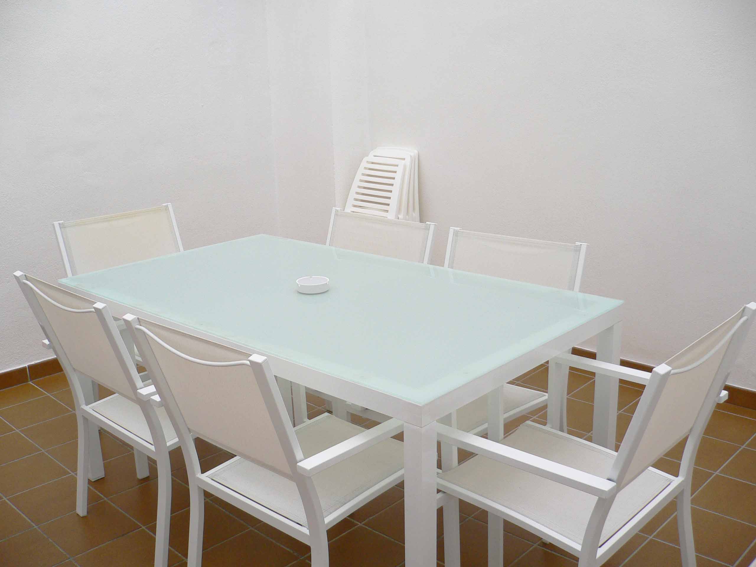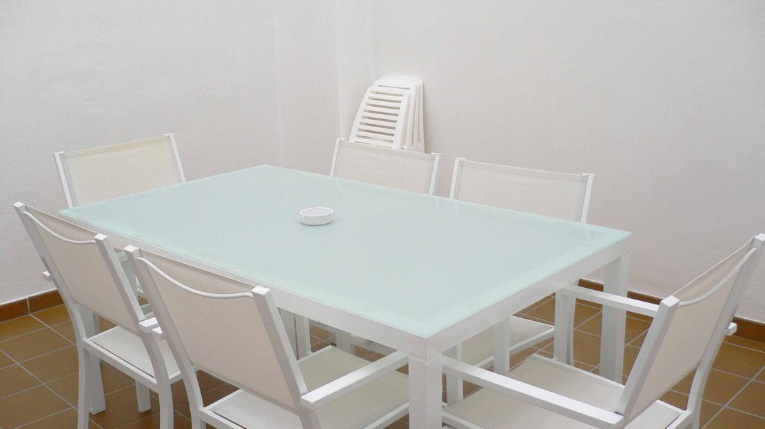 Cuenta con: Salón, cocina, 3 dormitorios, 2 baños completos y una amplia terraza compuesta por una mesa y 6 sillas.