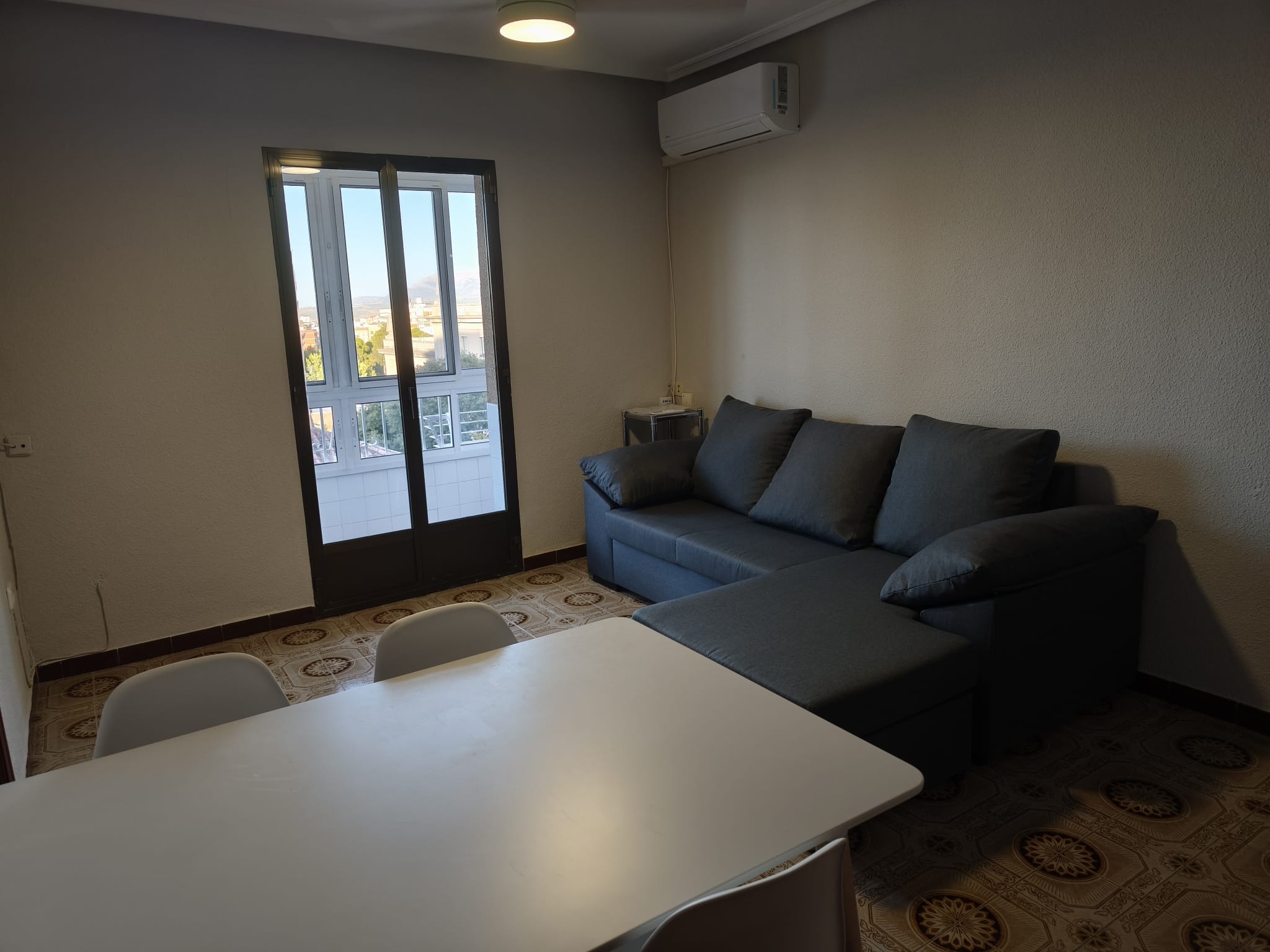 El piso es todo exterior. Tiene 3 dormitorios, un baño y dos terrazas. Una terraza lavadero y otra terraza exterior con amplias vistas. Tiene ascensor y aire acondicionado.