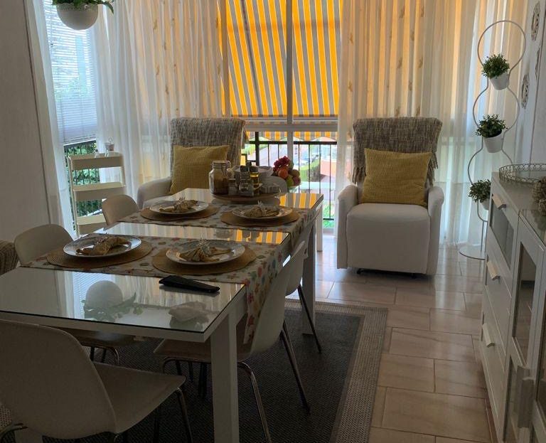El piso cuenta con 3 habitaciones, la principal, con terraza privada. 2 cuartos de baños, cocina y salón comedor totalmente equipado, con dos sillones reclinables y sofá cama para dos personas. Aire acondicionado y ventiladores. Tele de 65 pulgadas con smart TV. Lavadora, lavavajillas, inducción y estractor nuevos.