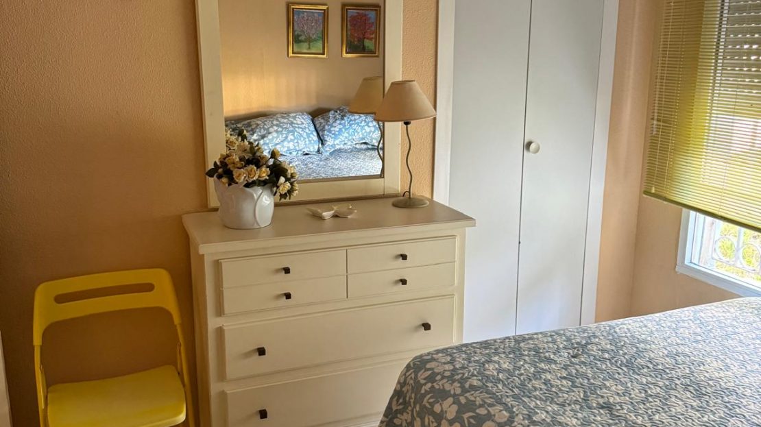 Tiene 2 dormitorios con cama de matrimonio, uno de ellos tiene además cama nido supletoria individual.