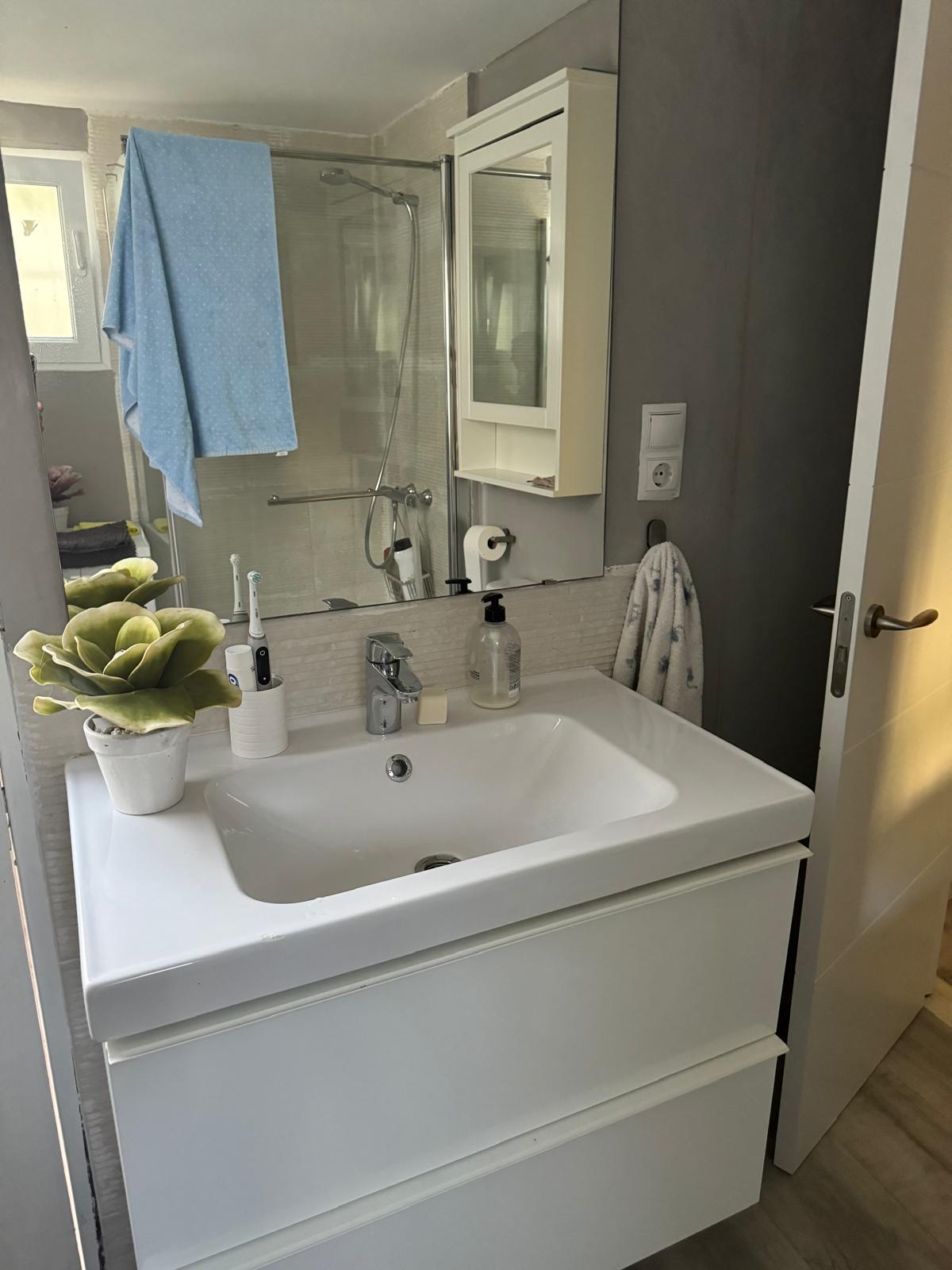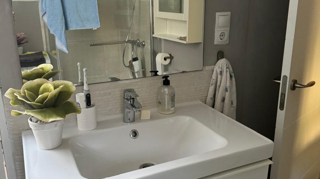 2 baños completos, patio interior de uso privado para tender, terraza con vistas al mar y un espacioso salón.