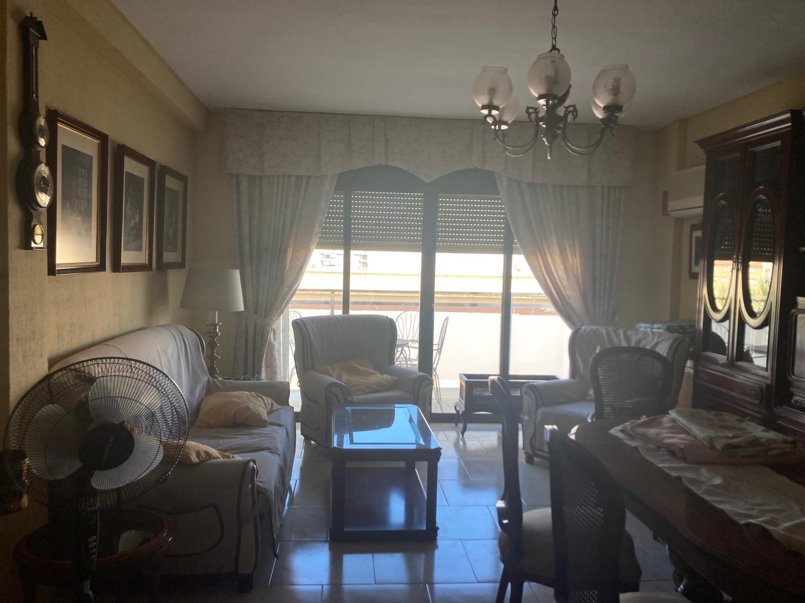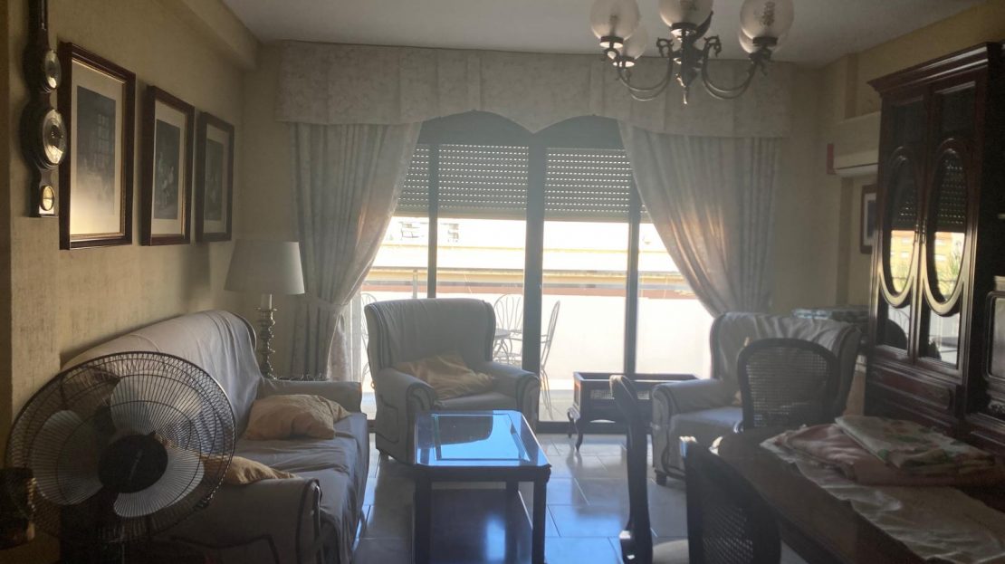 El piso es muy amplio y luminoso. Cuenta con 3 habitaciones, dos baños, cocina, salón amplio y salita y una terraza por la que entra mucha luz.